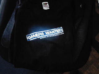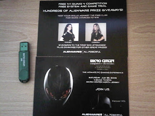 I was fortunate enough to recieve a giveaway (which was an Alienware bag w/strings, t-shirt, & an 8GB Micro Center flash drive), that they only gave way to the 500 attendees. They were raffling off an Alienware heavy duty laptop bag, gaming keyboard & gaming mouse along with Bionic Commando, Ghostbusters, & Sims 3 for the PC.