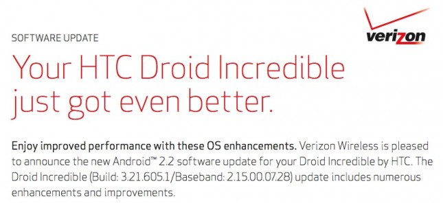 Verizon is prepping to keep their Android devices current by treating its customers to the official Android 2.2 update. Next on the list of the Froyo update is the HTC Droid Incredible will start rolling out tomorrow. Now Droid Incredible users can now enjoy Flash 10.1 support within the browser, 3G Mobile Hotspot, improved browser performance w/ faster loading of Javascript, Wi-Fi N support, and 720p video recording. All of the Droid Incredible users can breathe new life into their devices.