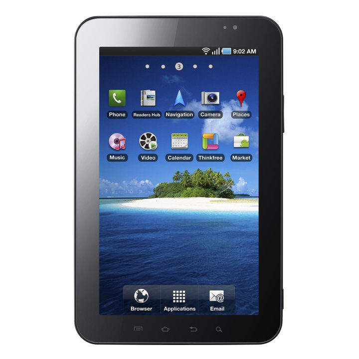 The Galaxy Tab features a brilliant 7-inch enhanced TFT display screen, 1GHz Hummingbird Application processor supporting 3D graphics and smooth Web browsing and front and rear-facing cameras for video chat while on-the-go. The Galaxy Tab is powered by Android 2.2™, including full support for Adobe® Flash® Player 10.1. Just like the Galaxy S smart phones, the Galaxy Tab includes Samsung’s Social Hub application and the new Media Hub content service, offering a robust collection of premium movies and TV episodes from some of the biggest entertainment companies.