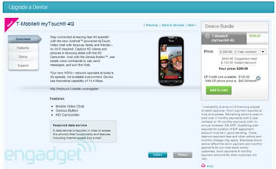 Although the new myTouch4G for T-Mobile won’t officially launch until November 3rd, current T-Mo subscribers can order theirs a little early. Any current T-Mo users can just log into their MyT-Mobile to get started with your order. As T-Mo’s first HSPA+device w/ a front-facing camera, you may wanna take advantage of this if you are eligible for an upgrade that is.