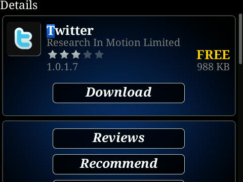 Twitter for BlackBerry 1.0.1.7 via Crackberry