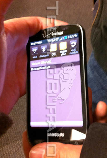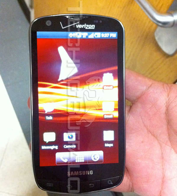 Originally brandished off as the unnamed 4G LTE Samsung device for Verizon at CES back in January, the Samsung Stealth was photographed.   The Stealth offers its users 4G speeds on a 4.3inch Super AMOLED Plus touchscreen, running Android 2.2, powered by a 1GHz Hummingbird processor, 1.3MP front-facing & 8MP rear-facing camera w/ 720p HD video capture, Wi-Fi b/g/n support, Bluetooth, aGPS, and HDMI-out port.  TechnoBuffalo got the skinny on a possible release date (which is looking like mid-April) and reported to have a great, 8-10 hours of battery life on LTE.   This makes the 4G smartphone choice for Verizon customers even more difficult but that’s only if the Thunderbolt ever gets released.   Check out a few more pics after the break.